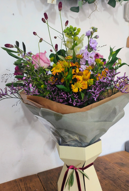 When you choose this design, our florists will choose the very best selection of fresh flowers to create a unique bouquet which reflect the season, so the colours and flowers will be a surprise every time.