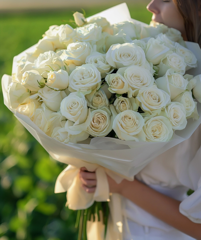 Our extra large rose bouquet is wow. The best white avalanche roses are Hand-tied. Need a vase! Options below.